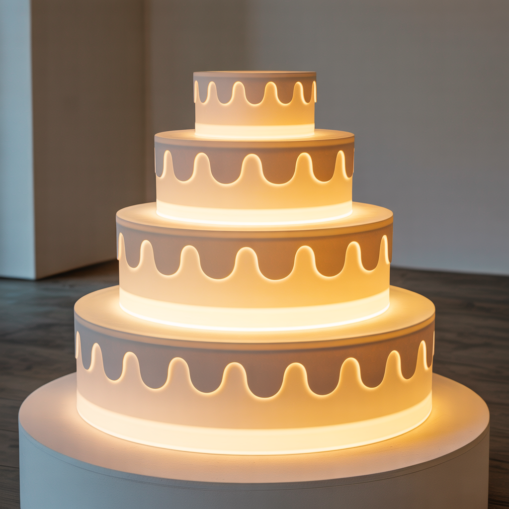 cake – 40*40*60cm – Étanchéité IP65, batterie Li-ion 4400mAh, recharge DC 5V (adaptateur), autonomie 8-12h, LEDs 24RGB+18White.